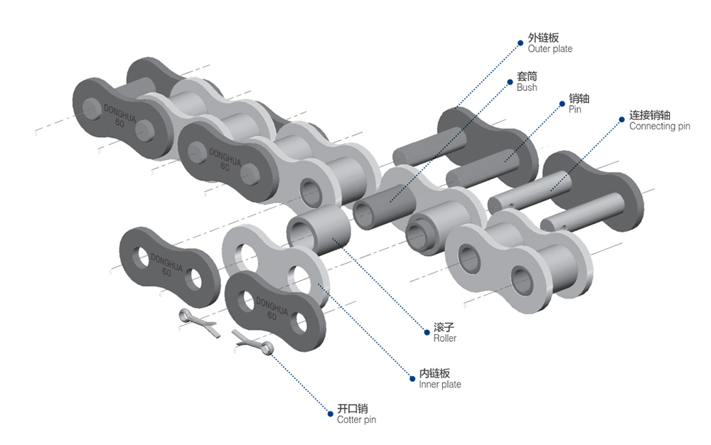 ● 短节距精密滚子链符合ISO、ASME/ANSI、DIN、JIS等标准,主要有A系列短节距精密滚子链、B系列短节距精密滚子链、重载系列滚子链等系列; ● 采用优质的材料、先进的加工工艺,产品具有高抗拉强度、高疲劳强度等特点,抗拉强度达到ISO标准最小抗拉强度1.1倍以上,疲劳强度达到ISO标准最小动载强度1.15倍以上; ● 产品广泛应用于工程机械、农业机械等各领域,为各类机械、设施传递动力。