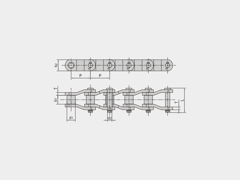 ● 重载传动用弯板滚子链符合ISO 3512、ASME B29.10、DIN 8182等标准。 ● 弯板滚子链在结构上只有一种弯板链节,链板的折弯使链条能吸收较大的冲击载荷;销轴和套筒、链板间的间隙较大,在恶劣工况可以保持良好的灵活性。 ● 采用优质的材料、先进的加工工艺,产品抗拉强度达到ISO标准最小抗拉强度1.15倍以上。 ● 适用于低速、大载荷、有尘土和两链轮不易共面等繁重工况下开式动力传动的场合,主要用在矿山、冶金、工程机械等较大型机械。