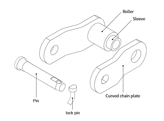 ● There is only one kind of curved plate link in the structure of curved plate roller chain, and the bending of chain plate enables the chain to absorb large impact load; The gap between the pin shaft, sleeve and chain plate is large, which can keep good flexibility under severe working conditions.