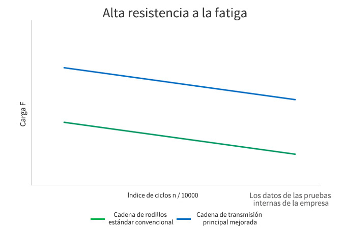 ● Materiales de alta calidad, tecnología de procesamiento avanzada, productos con alta resistencia a la tracción, alta resistencia a la fatiga y otras características; la resistencia a la tracción de la cadena de transmisión principal mejorada alcanza la resistencia a la tracción mínima de la norma ISO 1,2 veces, y la resistencia a la fatiga alcanza la dinámica mínima fuerza de carga de la norma ISO 1,6 veces.