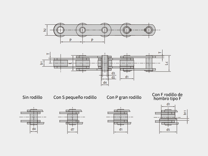 | Con S pequeño rodillo | Con P gran rodillo | Con F rodillo de hombro tipo F |