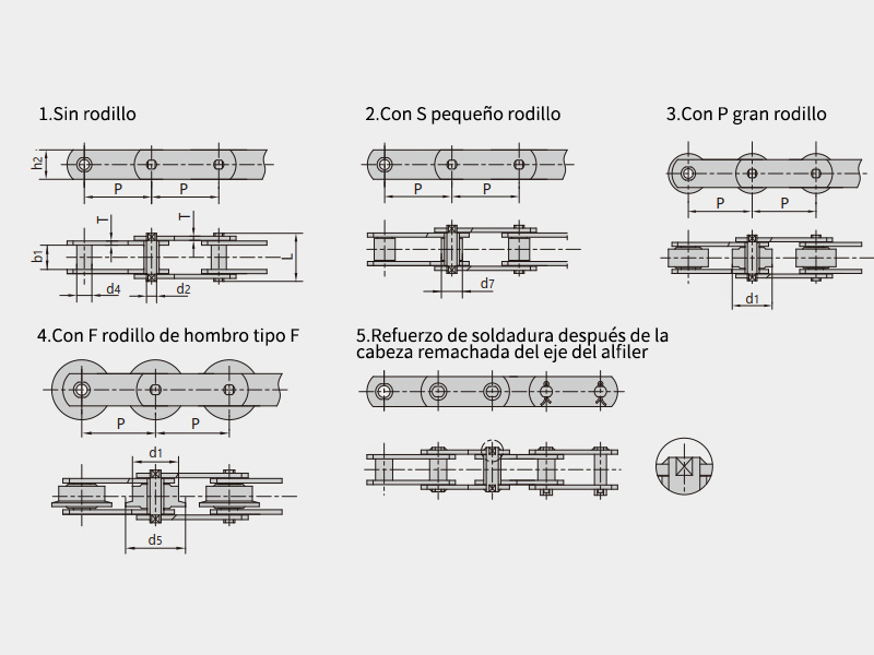 ● Cadena transportadora métrica (serie M) en línea con las normas ISO, DIN, principalmente cadena transportadora tipo M, cadena transportadora tipo MT, cadena transportadora de eje de pasador hueco tipo MC;