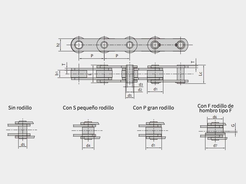 | Con rodillos en forma de S | Rodillo grande P | Rodillo de hombro tipo F |