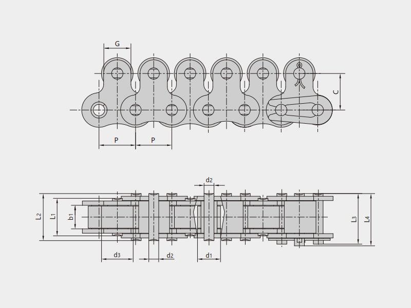 | 倍速链 | 带侧滚轮 | 顶滚轮 |