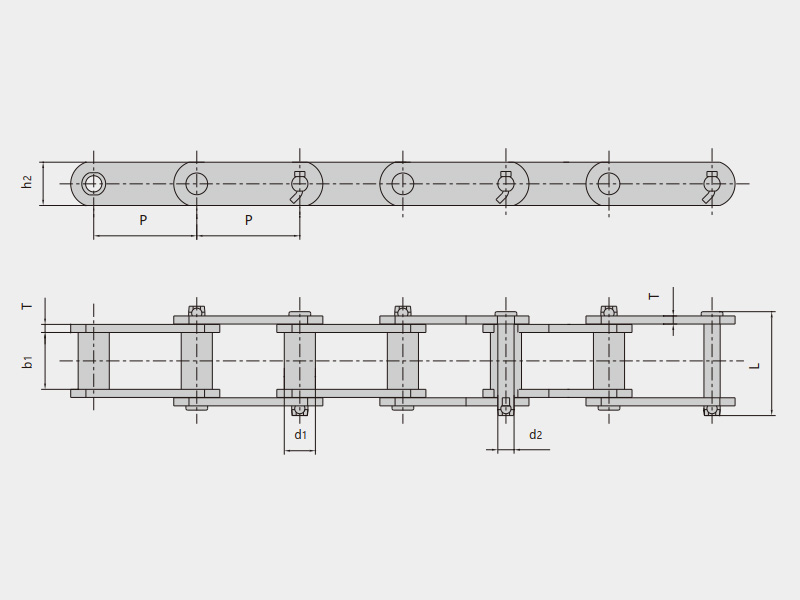 ● 工程用钢制套筒链是由早期铸造链条演变而来,基于链条使用功能和长使用寿命的设计,产品具有较大的铰链承载面积,通过热处理强化保证足够的抗磨损和抗冲击性能。