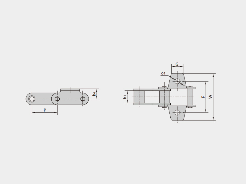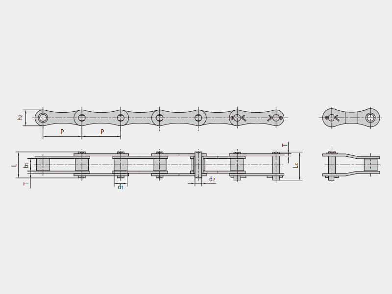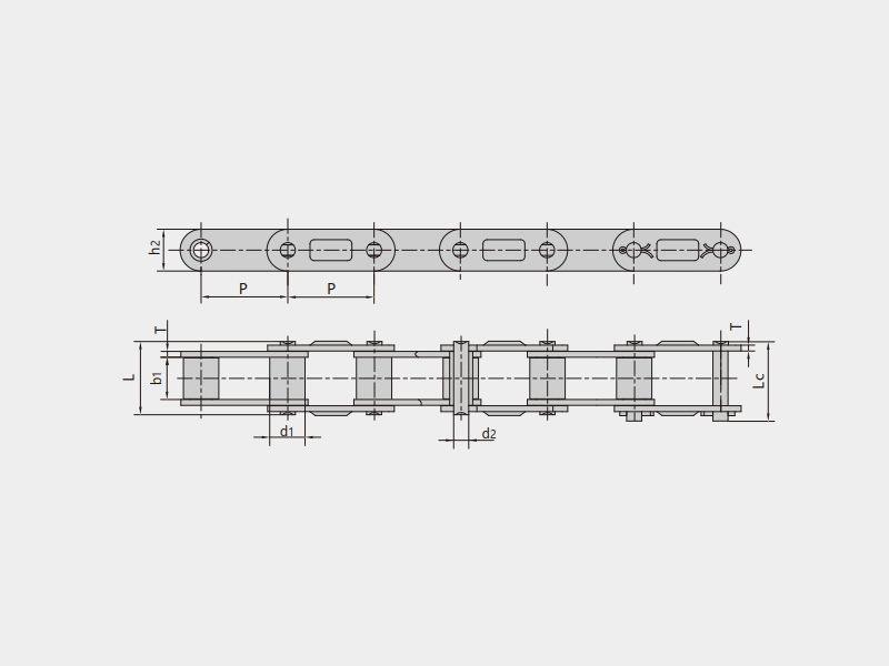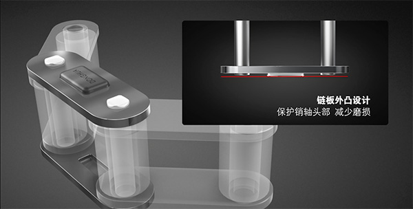 ANSI系列农用链中喂入链具有以下特点: 采用特殊结构设计,提升产品的可靠性;其中销轴表面特殊硬化处理,使用寿命提高2倍以上。