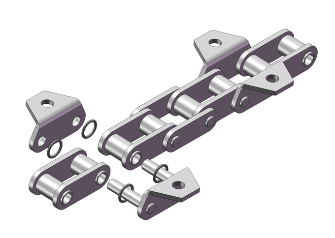 ● O形密封圈农机链主要有C2060 OR系列、C2060H OR系列带附件链条; ● 与标准O形密封圈滚子链结构相同,外、内链节之间装有O形密封圈,以防止使用过程油脂流失及杂物进入链条轴套间隙,适用于耐磨损要求较高且不能经常加油润滑的使用环境。使用寿命是常规定链条的1倍以上。 ● 产品主要应用于全喂入水稻收获设备。